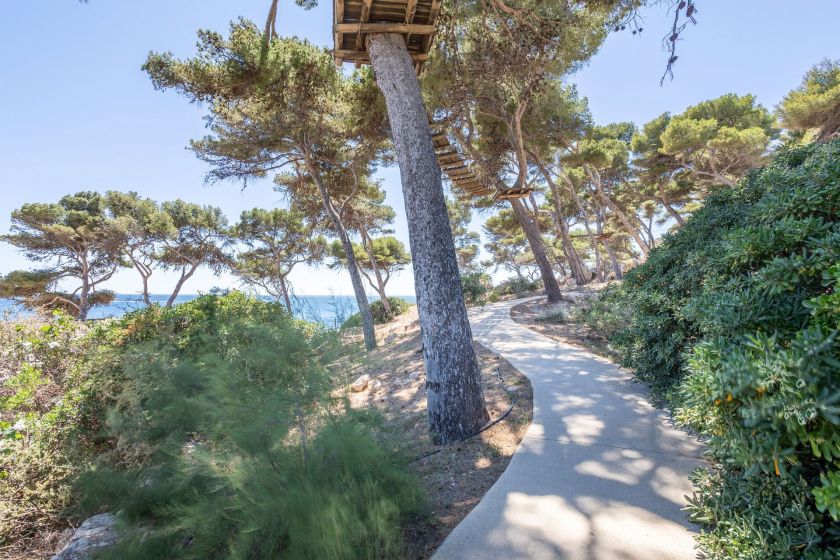 Aufenthalt in einem Clubdorf am Mittelmeer mit Pool und Strand mit direktem Zugang zu Halb- oder Vollpension.