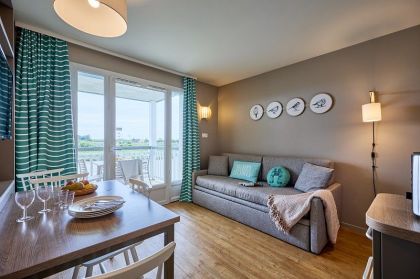 "Très belle residence Proche de la mer Residence récente , jolie , calme et très confortable Une petite piscine agréable Service du pain et viennoiserie Personnel califié Propreté du lieu à l interieur et a l extérieur Petite ville très sympathique a proximité de Caen"